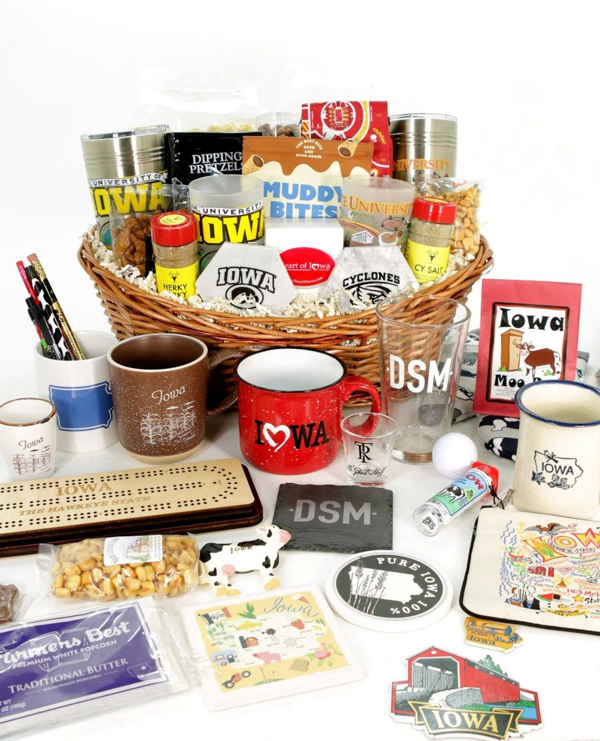 Heart of Iowa has many Iowa gift baskets to choose from, perfect for that special person or occasion. Select one of our specialty baskets or let us help you design your own. Choose from our large selection of baskets, bags and boxes to fill with our wide array of Iowa gourmet foods, gifts and souvenirs. When family, friends, and business associates want a little bit of Iowa, choose Heart of Iowa Market Place for your gifts.